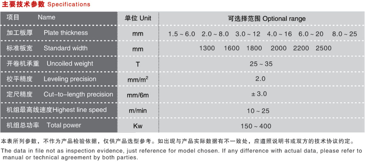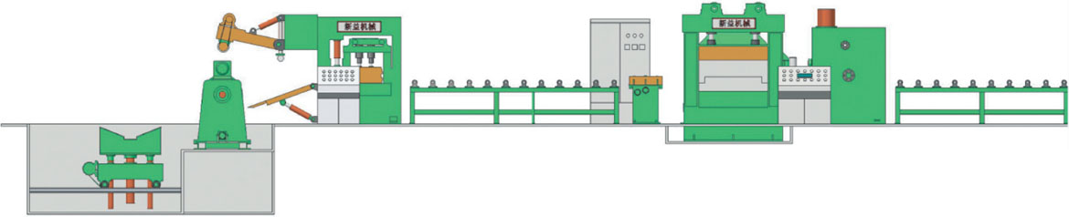该生产线为中厚板开卷校平生产线的升级机型。为了适应钢厂不断推出的厚度更大、板幅更宽的钢卷开平需要,本公司特别设计、制造出该系列产品。由上料小车、开卷机、引头装置、夹送及粗校、过渡台、对中装置、主校平机、测长装置、尾料夹送、剪板机、输送出料、落料整料装置、电控系统与液压气动系统等组成。